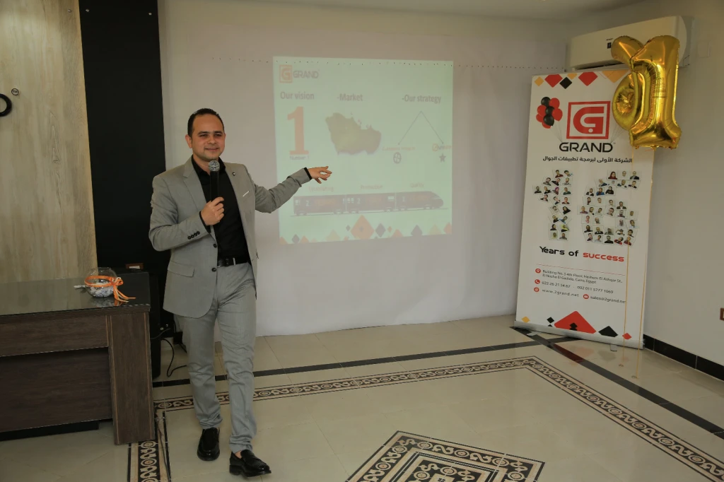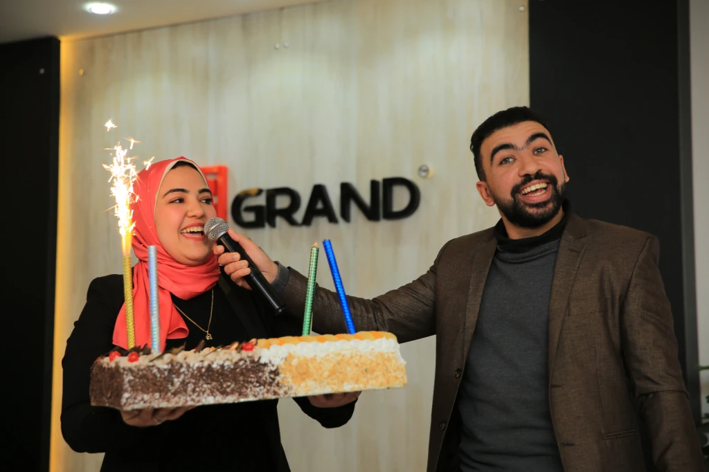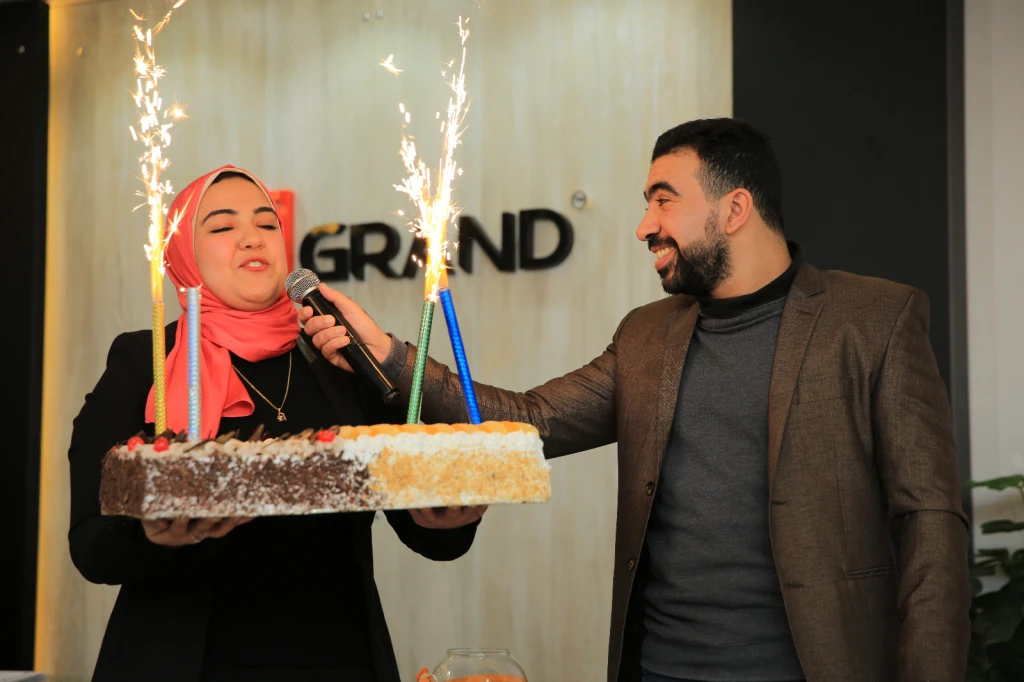 Every year, Grand Company celebrates its first anniversary in the presence of the Board of Directors and all of the company’s employees. This celebration is a special occasion to recognize the achievements achieved throughout the year and enhance the team spirit among the team. This event brings together all members to celebrate successes, exchange congratulations, and review future goals, which enhances belonging and motivates everyone to make more efforts to achieve continued success. This event also strengthens the bonds between leadership and employees, and encourages interaction and cooperation in a positive work environment.